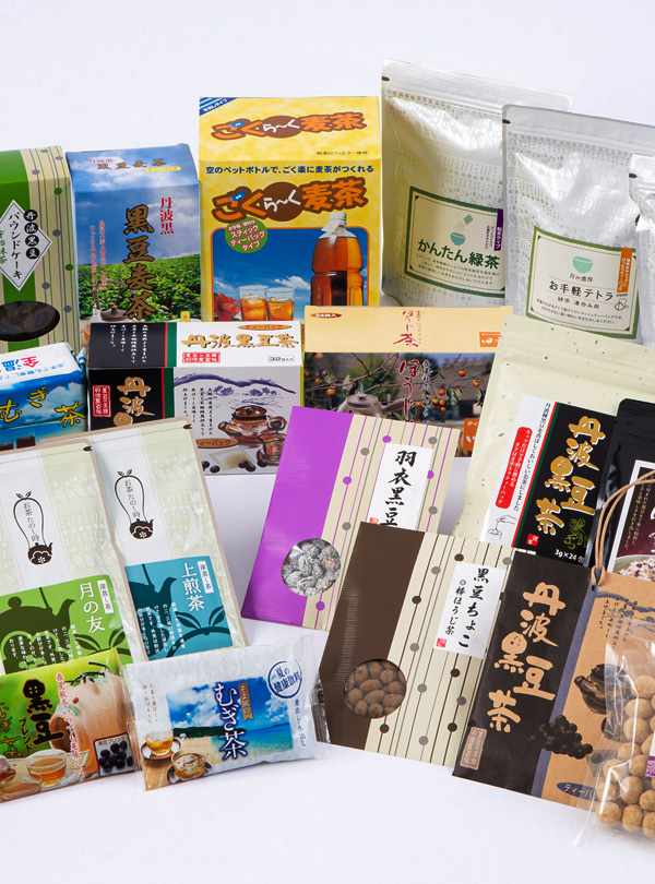 なぜ、お茶屋さんが黒豆をとよく聞かれます。当社は工場を1995年に大阪市内から京都府船井郡京丹波町(当時は丹波町)へ移転しました。そこで出会ったのが丹波黒の黒豆です。京丹波町の特産品には松茸など素晴らしいものがたくさんあるのですが、その一つが黒豆なのです。
